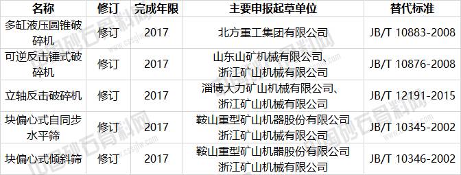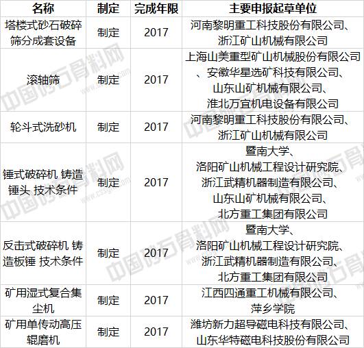 中国砂石骨料网记者日前从全国矿山机械标准化技术委员会获悉,2017年第一批标准机械行业标准即将开始制定。